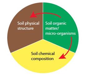 Hệ thống vi sinh vật đất rất phong phú ở vùng đất canh tác hữu cơ, giúp liên kết các phân tử đất lại với nhau. Phương pháp canh tác hữu cơ như luân canh cây trồng, cây trồng phủ đất, bón phân xanh, ủ phân động vật… giúp tăng hoạt động các vi sinh vật và tăng chất lượng đất. Ngược lại, canh tác hóa học sử dụng phân bón, thuốc trừ sâu, thuốc diệt nấm tổng hợp… tiêu diệt các vi sinh vật, làm giảm độ chặt của đất